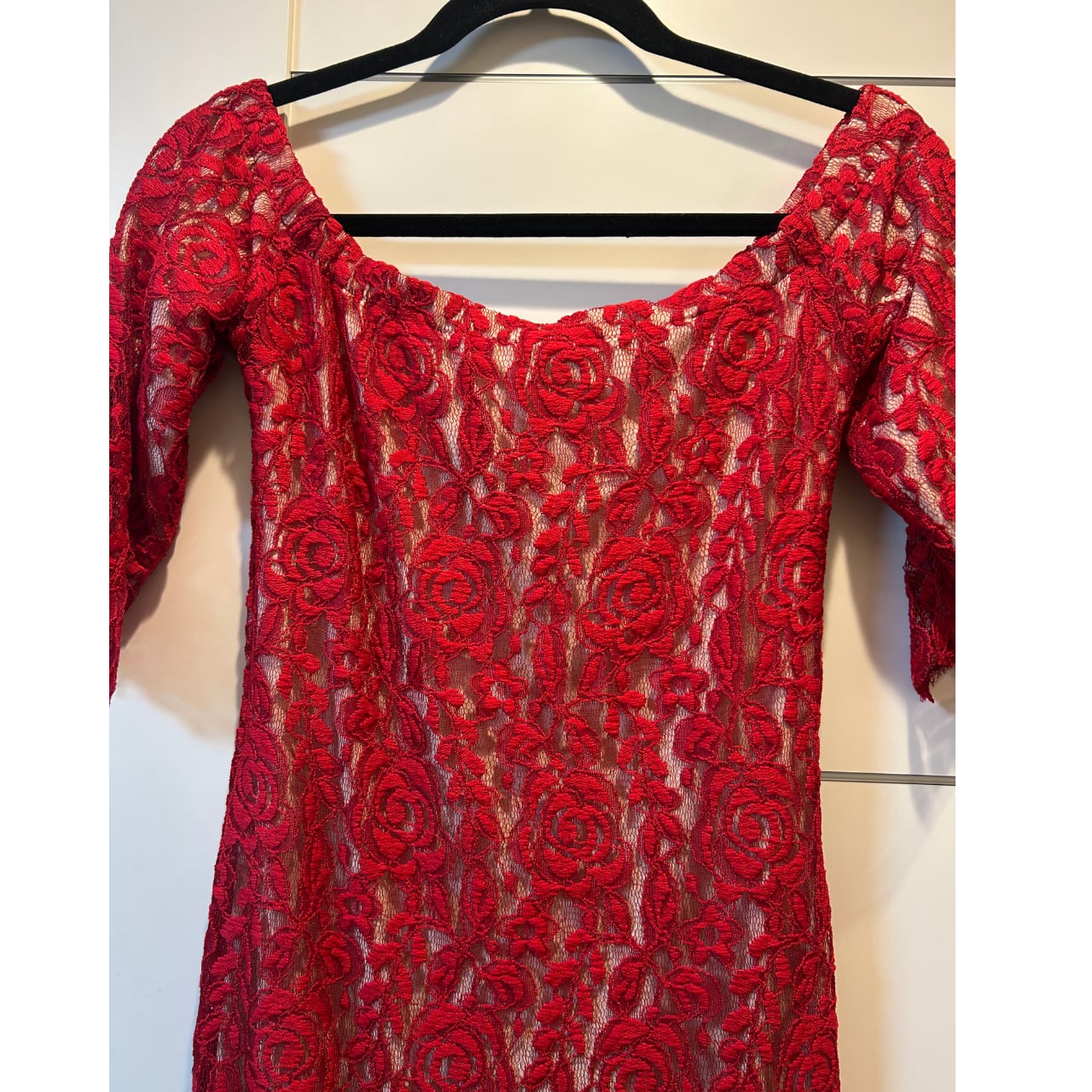 VESTIDO DE MIMI PINZON ミロンガ用 赤レースデコルテタイトワンピース Mサイズ